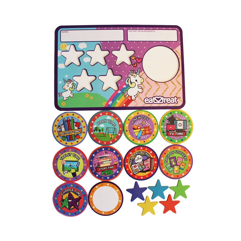 - Incentive packs allow children to collect magnetic stars as the reward for eating the healthy tray of food.